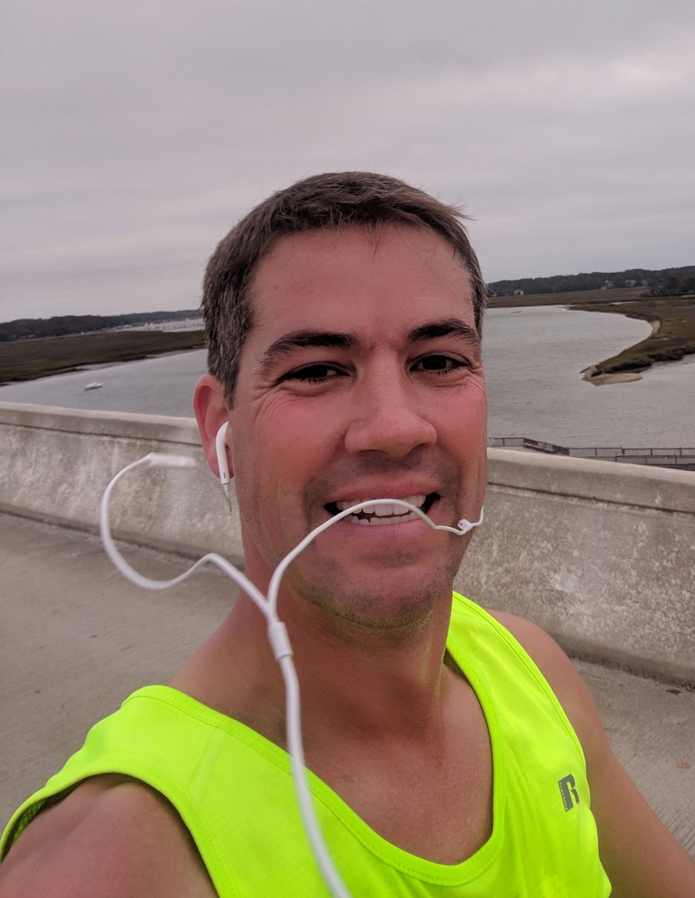 During the first mile, my pace was a quick seven minutes and ten seconds per mile. I pulled back a little as I didn’t believe that I could sustain that pace for the entire race. As I settled into a pace just under seven minutes and thirty seconds per mile, I started to feel very comfortable, that is, until I approached the bridge. The bridge wasn’t a very long or steep incline, especially compared to lots of the hills I run here in Western North Carolina, but there was a thirty mile per hour wind in my face during the climb. The wind, along with the incline, caused my pace to slow down to eight minutes and thirty seconds per mile. Fortunately, on the way back across the bridge, during the last mile and a half of the race, the wind was at my back. That’s when I increased my pace, allowing me to finish 13th overall in the Hilton Head 10k Bridge run.